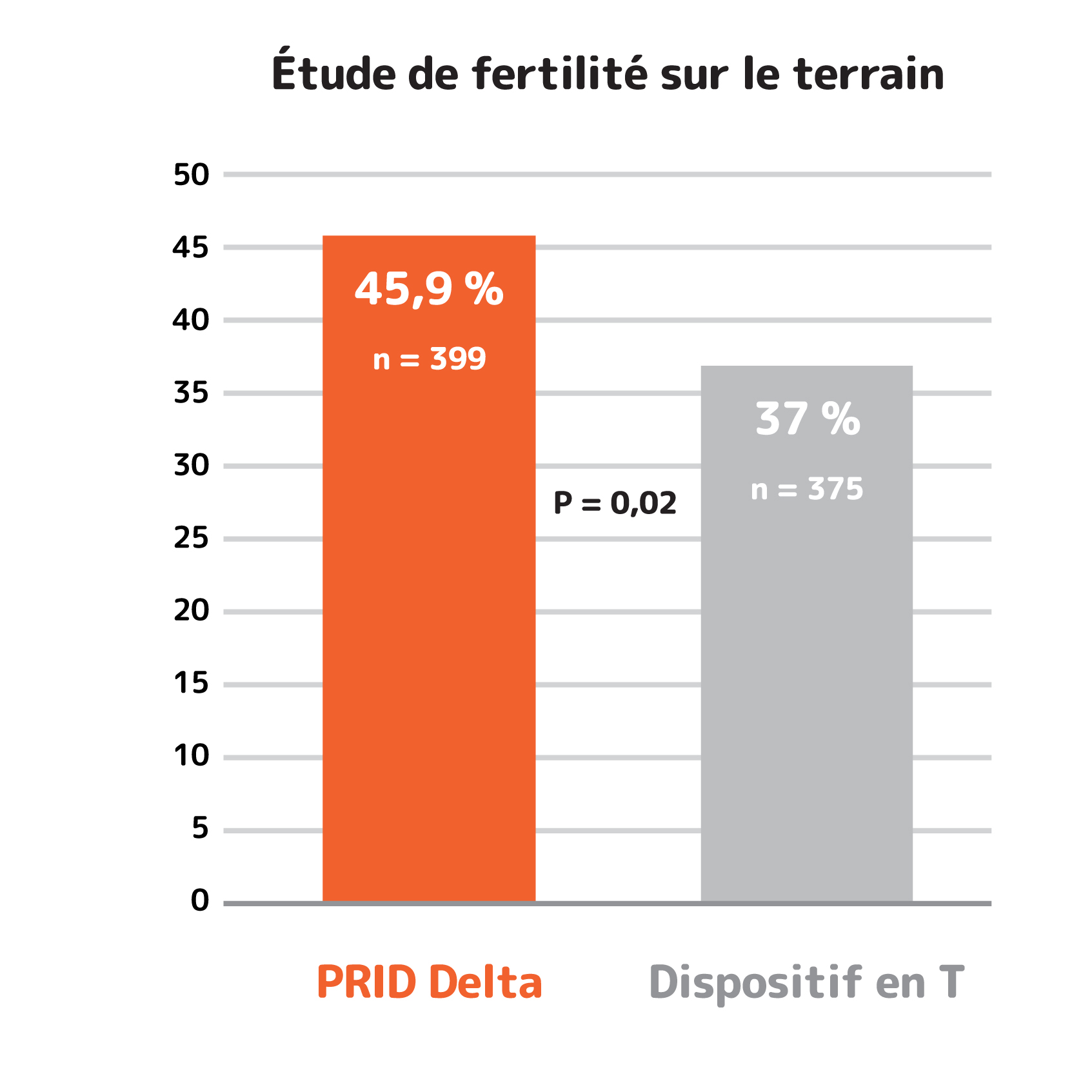 Le dispositif PRID Delta a été conçu pour générer un taux de rétention optimal sur le terrain, comme le montre la figure 3.